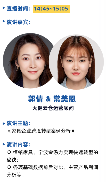 为广大外贸家具家居企业量身打造的“行业探索系列公开课-跨境电商专场”又将来袭。本次线上直播特邀中国国际家具展览会的战略合作伙伴,指定外贸B2B交易平台–大建云仓,以及e-Bay, 艾丽特思家居的5位行业打卡,带来他们各自的洞察和分享,为更多外贸家居企业解惑。
