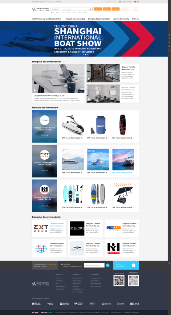 XIUGLE平台拥有船艇、船艇设备、水上运动产品、路亚钓鱼、旅游、大健康行业的优质供应商资源,供应商数量达500+家,注册买家用户数量达40,000名,产品数据库40,000条。作为业内专业B2B商贸平台,为供应商提供品宣及产品展示渠道,帮助采购商快速找到合适的产品及供货商。